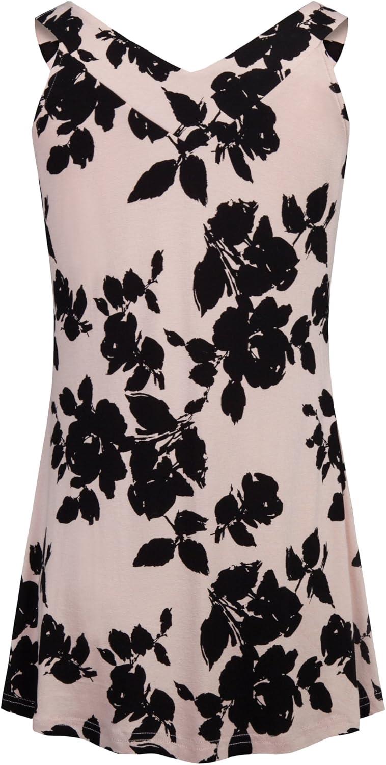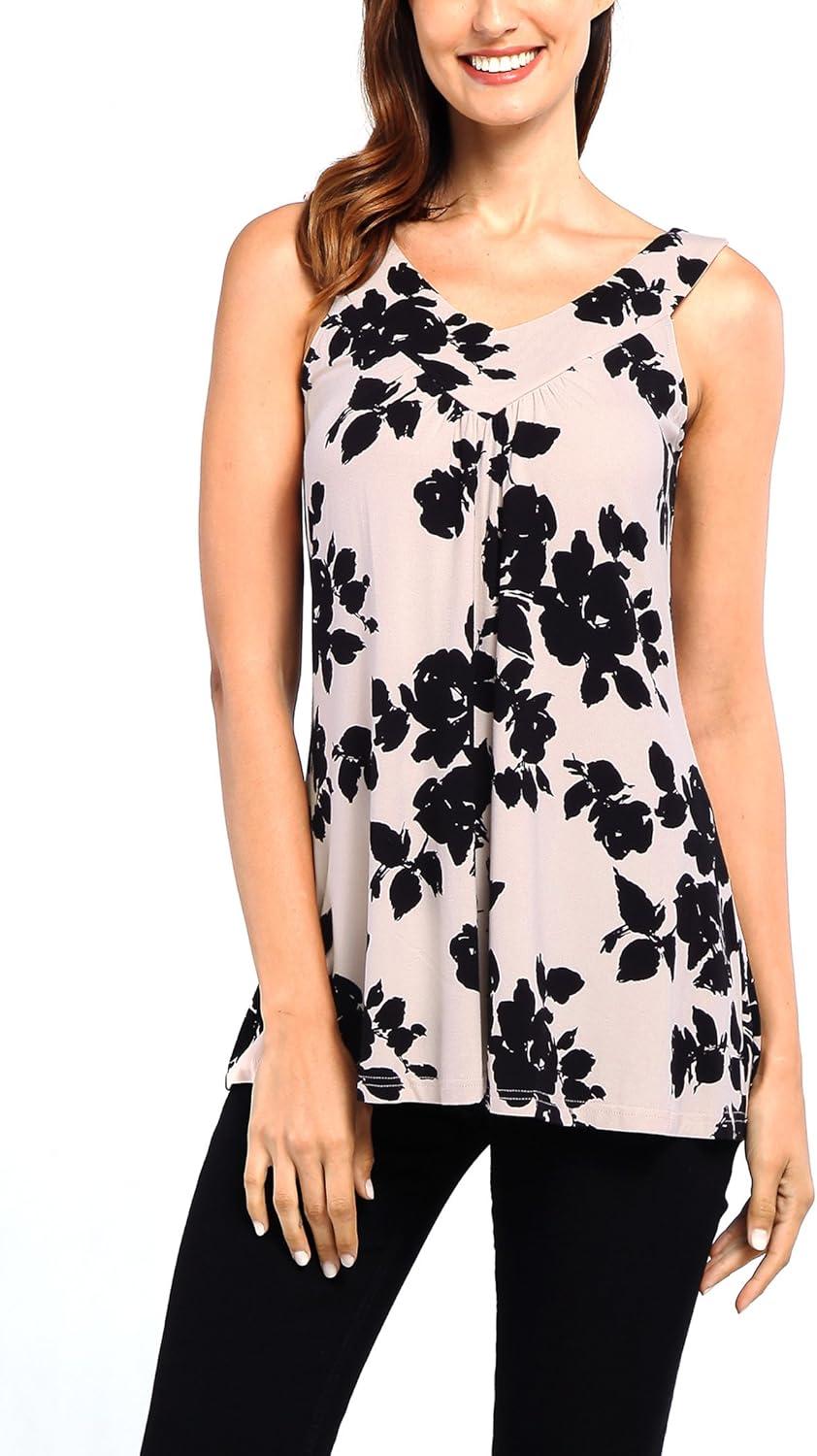 Ninedaily Women Comfy Sleeveless Tunic Top Pleated V Neck Tanks Vest Summer(Black Floral)