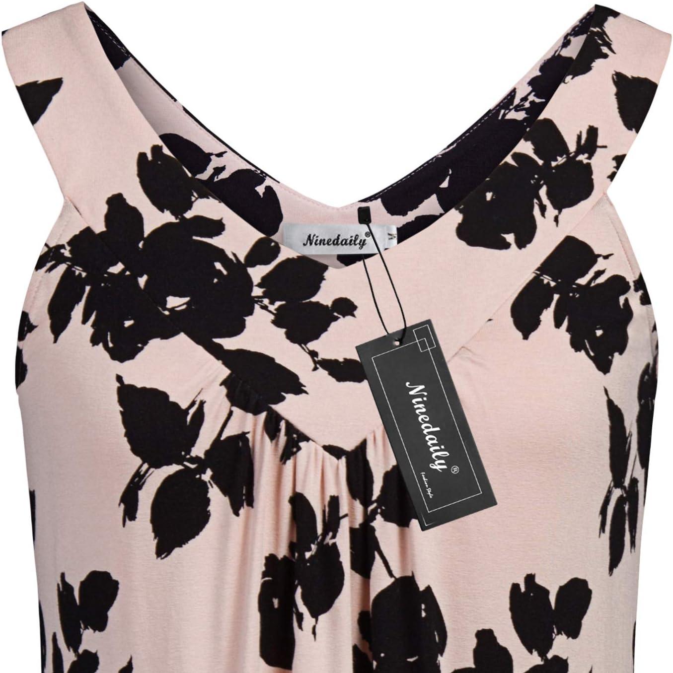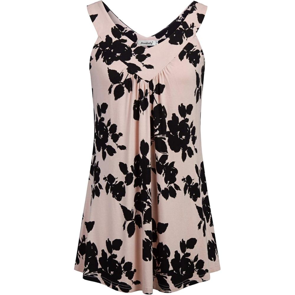 imageNinedaily Women Comfy Sleeveless Tunic Top Pleated V Neck Tanks Vest SummerBlack Floral
