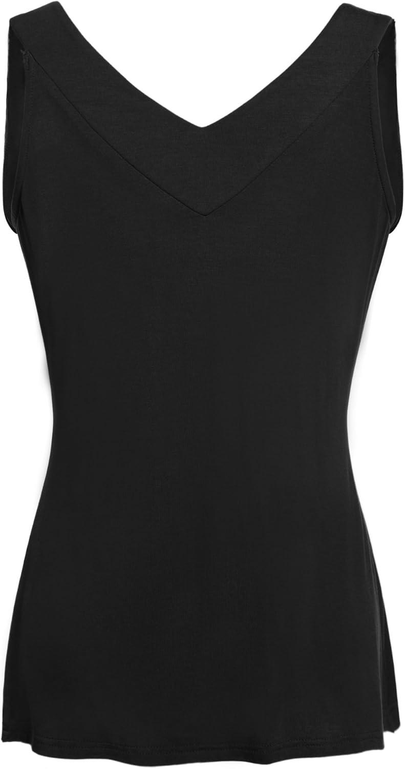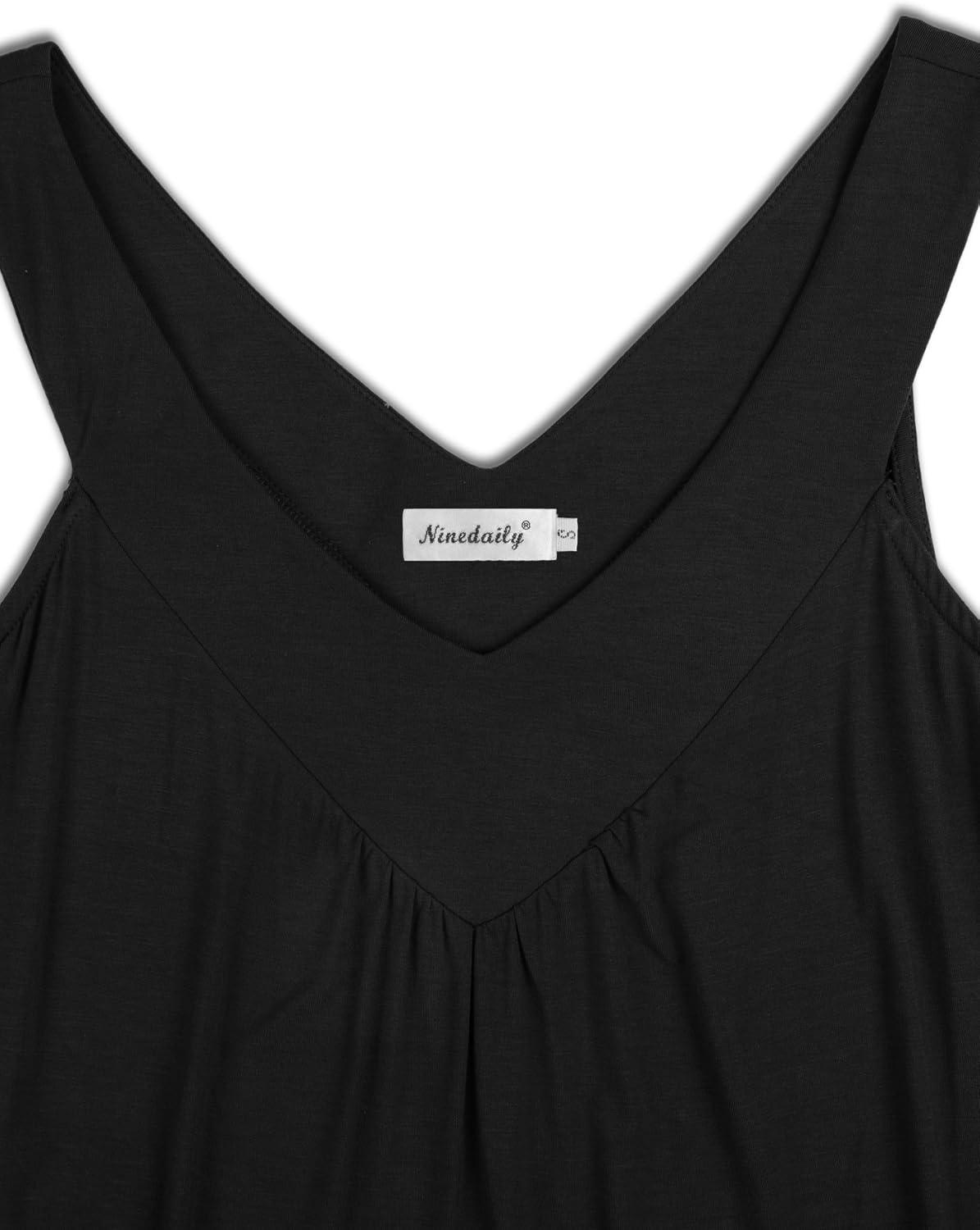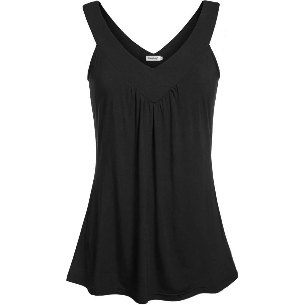 Ninedaily Women Comfy Sleeveless Tunic Top Pleated V Neck Tanks Vest Summer(Black)