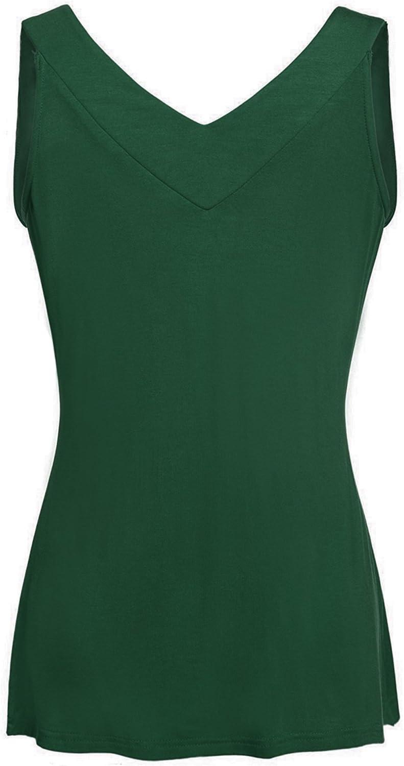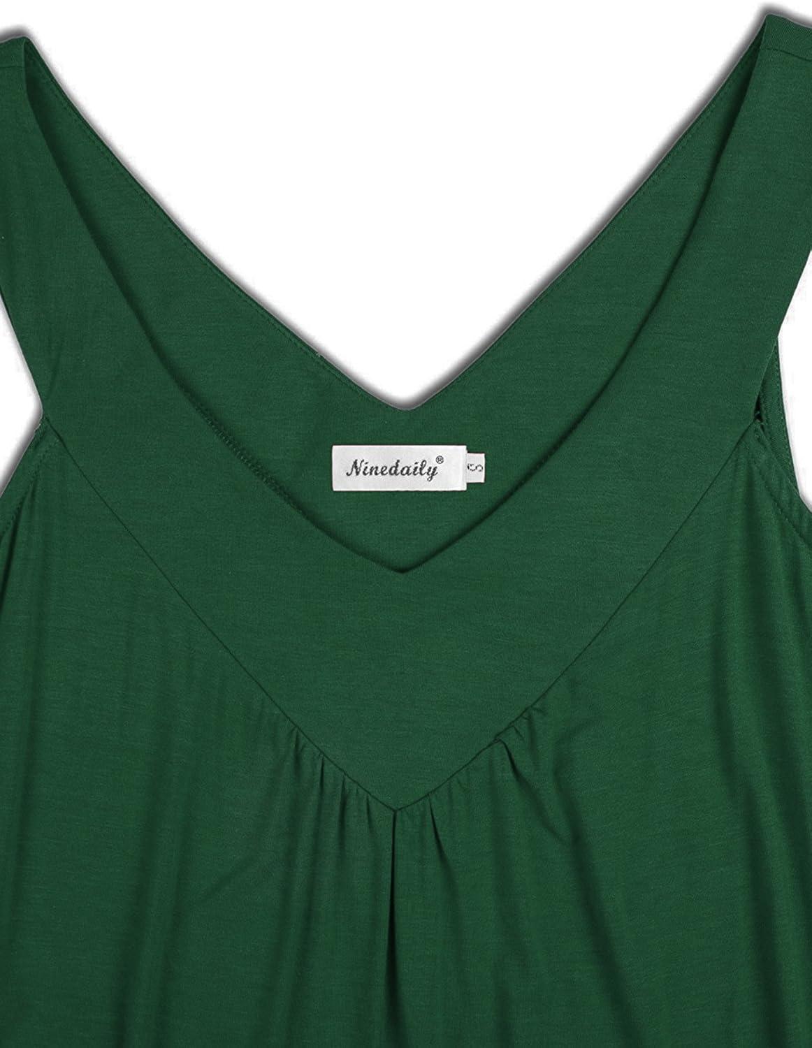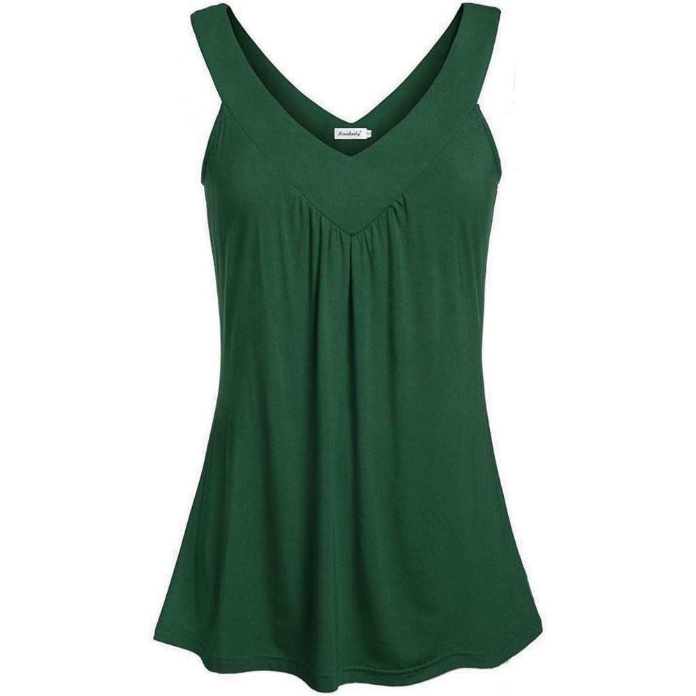 Ninedaily Women Comfy Sleeveless Tunic Top Pleated V Neck Tanks Vest Summer(Green)
