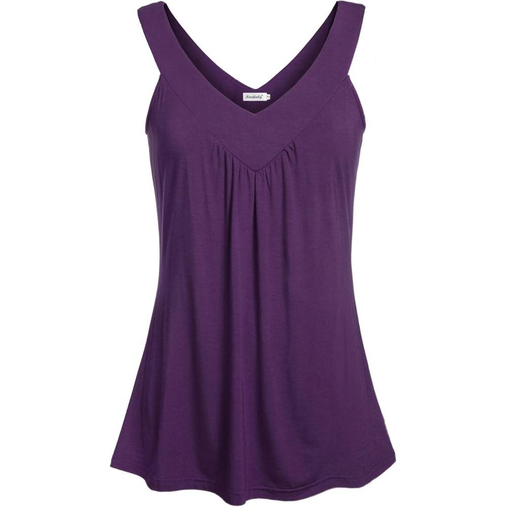 imageNinedaily Women Comfy Sleeveless Tunic Top Pleated V Neck Tanks Vest SummerPurple