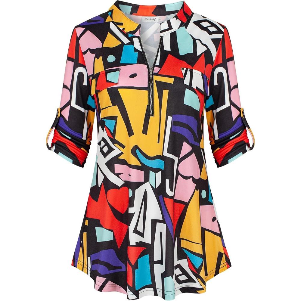 Get the Ninedaily Women’s 3/4 Sleeve Plaid Shirts Zip Floral Casual Tunic Blouse Tops(Multicolored) you want at a discounted price during our markdown sale event.