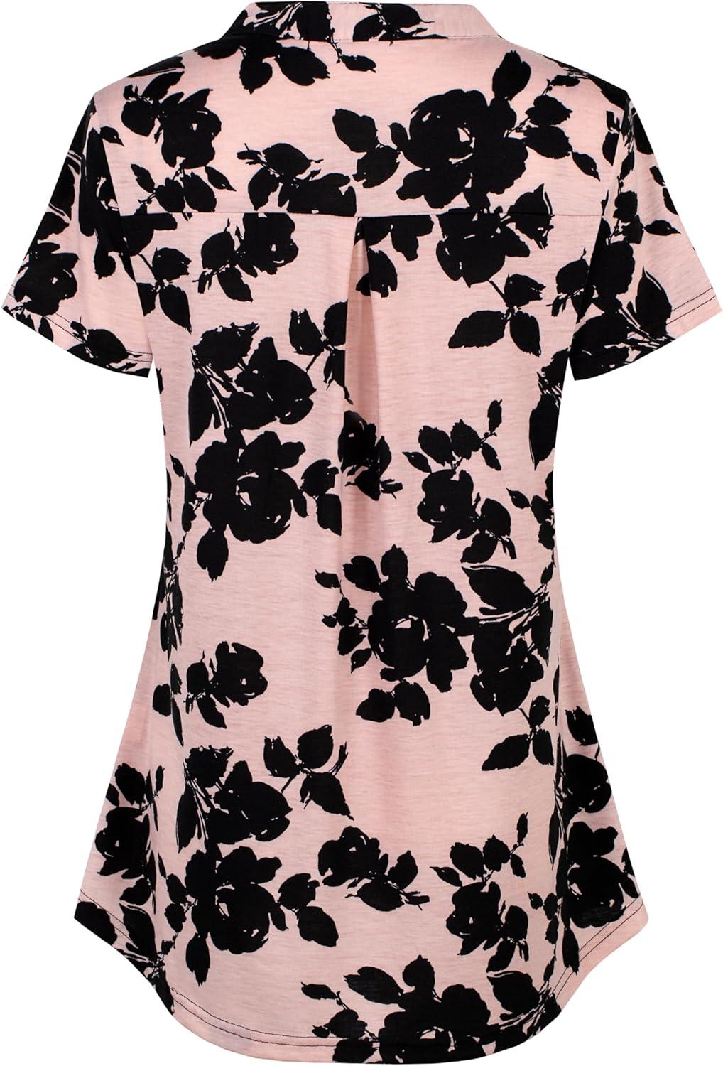 Ninedaily Women's Summer Tops Short Sleeve Casual Blouse Zip Floral Tunic Shirts(Black Floral)