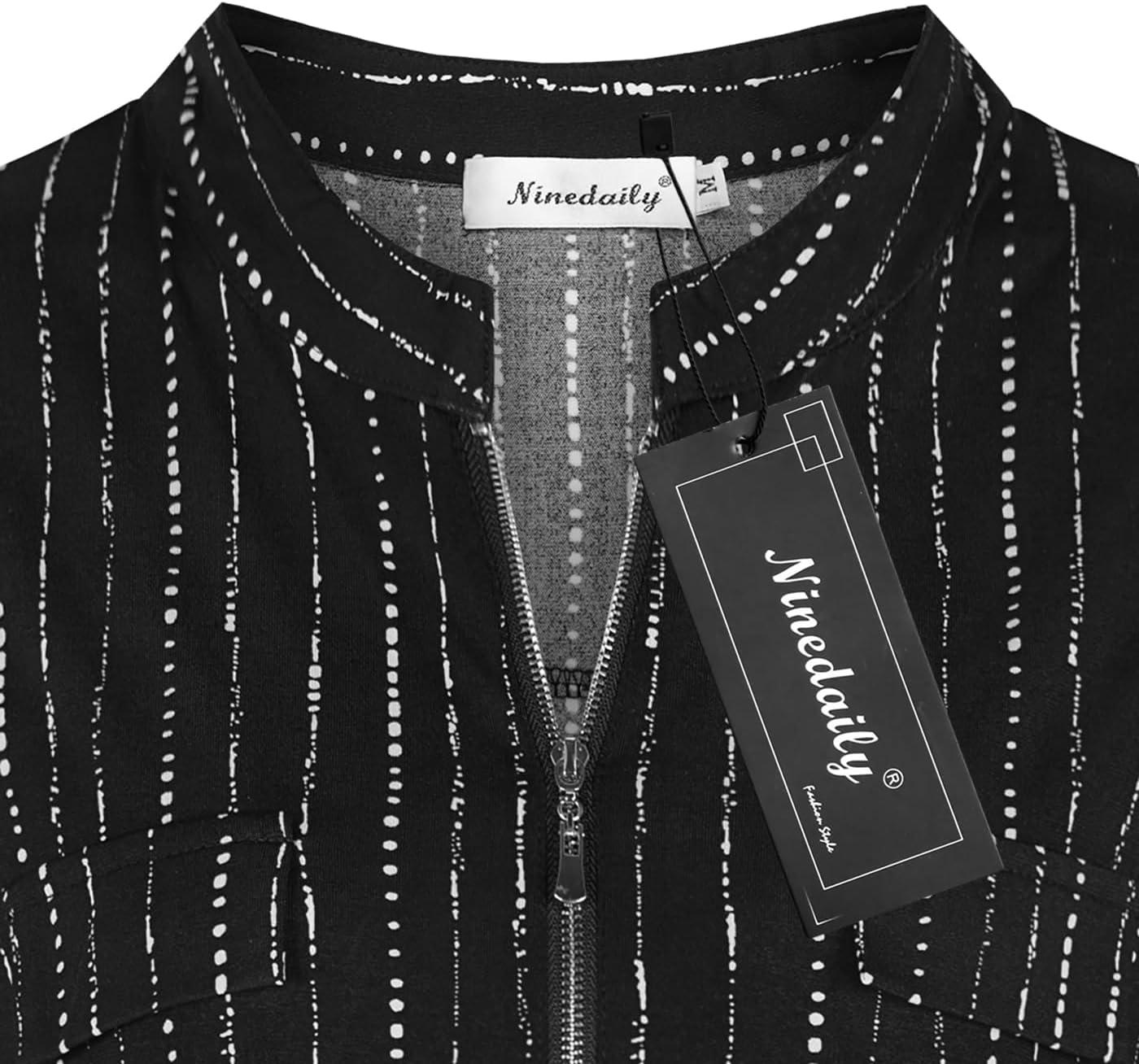 Be the first to review “Ninedaily Women’s Summer Tops Short Sleeve Casual Blouse Zip Floral Tunic Shirts(Black Striped)”
