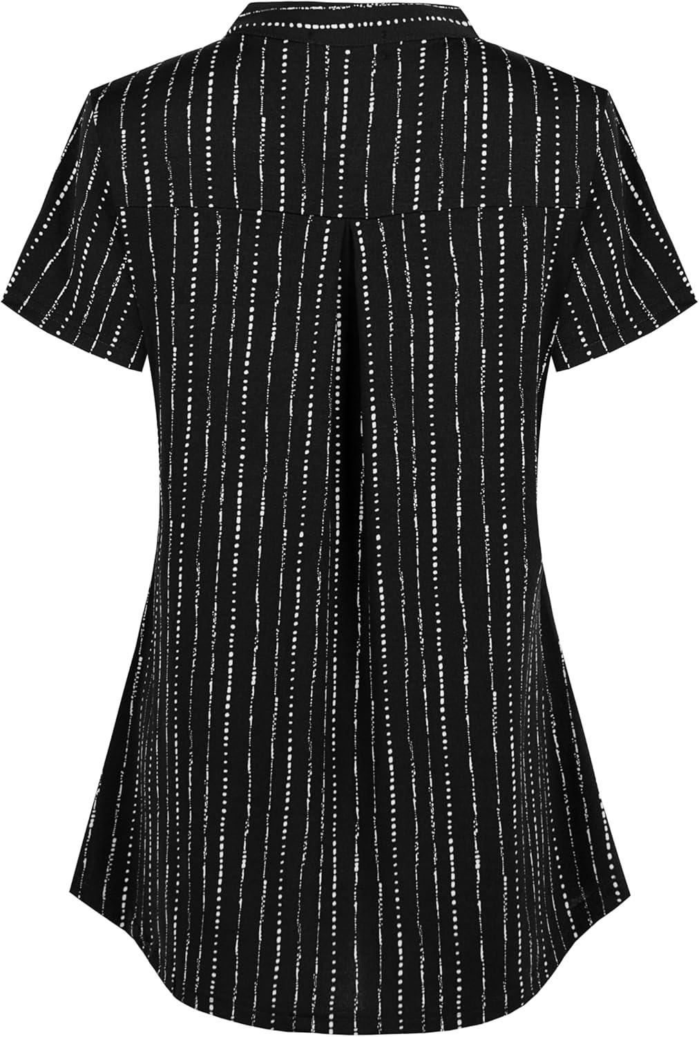 Ninedaily Women’s Summer Tops Short Sleeve Casual Blouse Zip Floral Tunic Shirts(Black Striped)