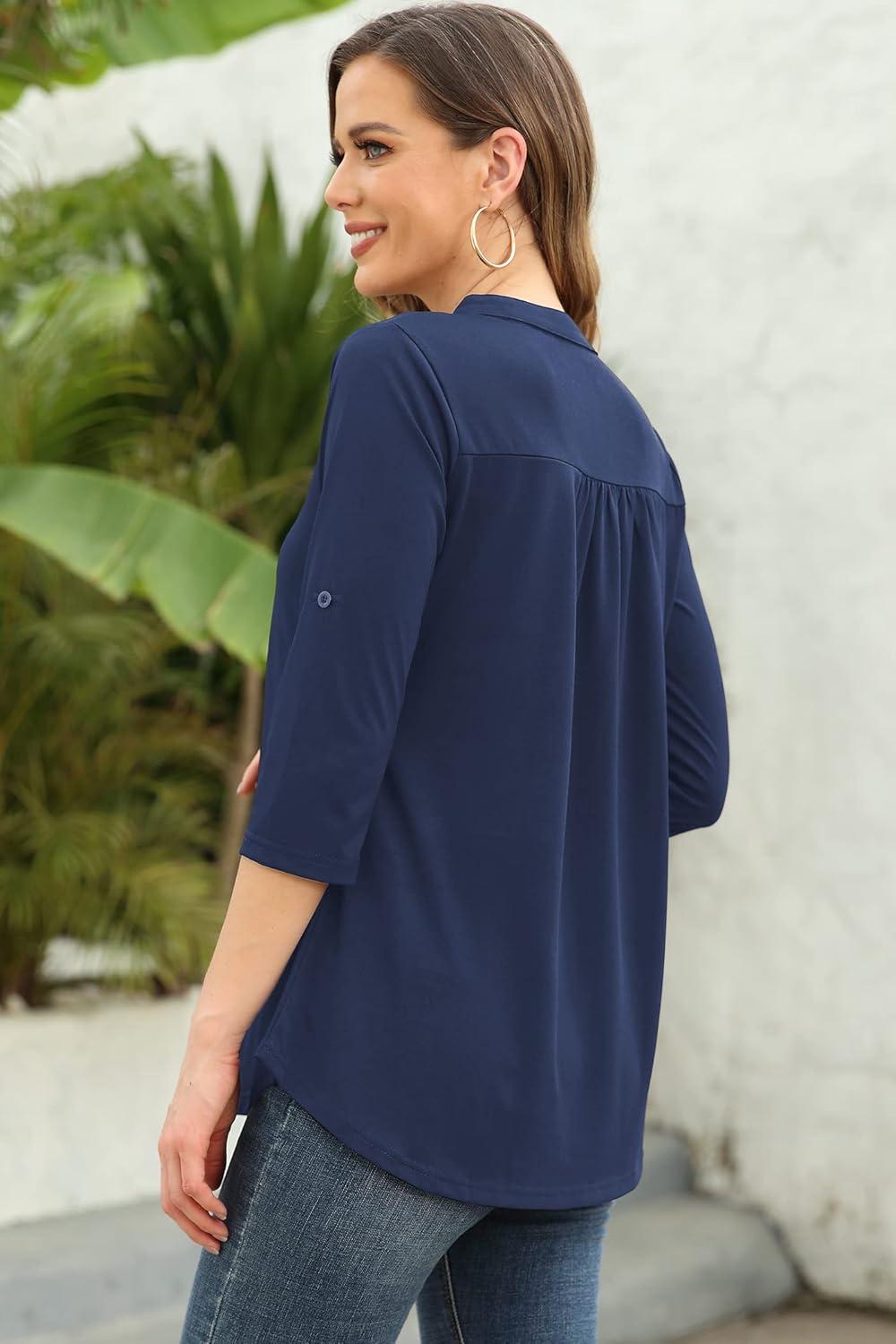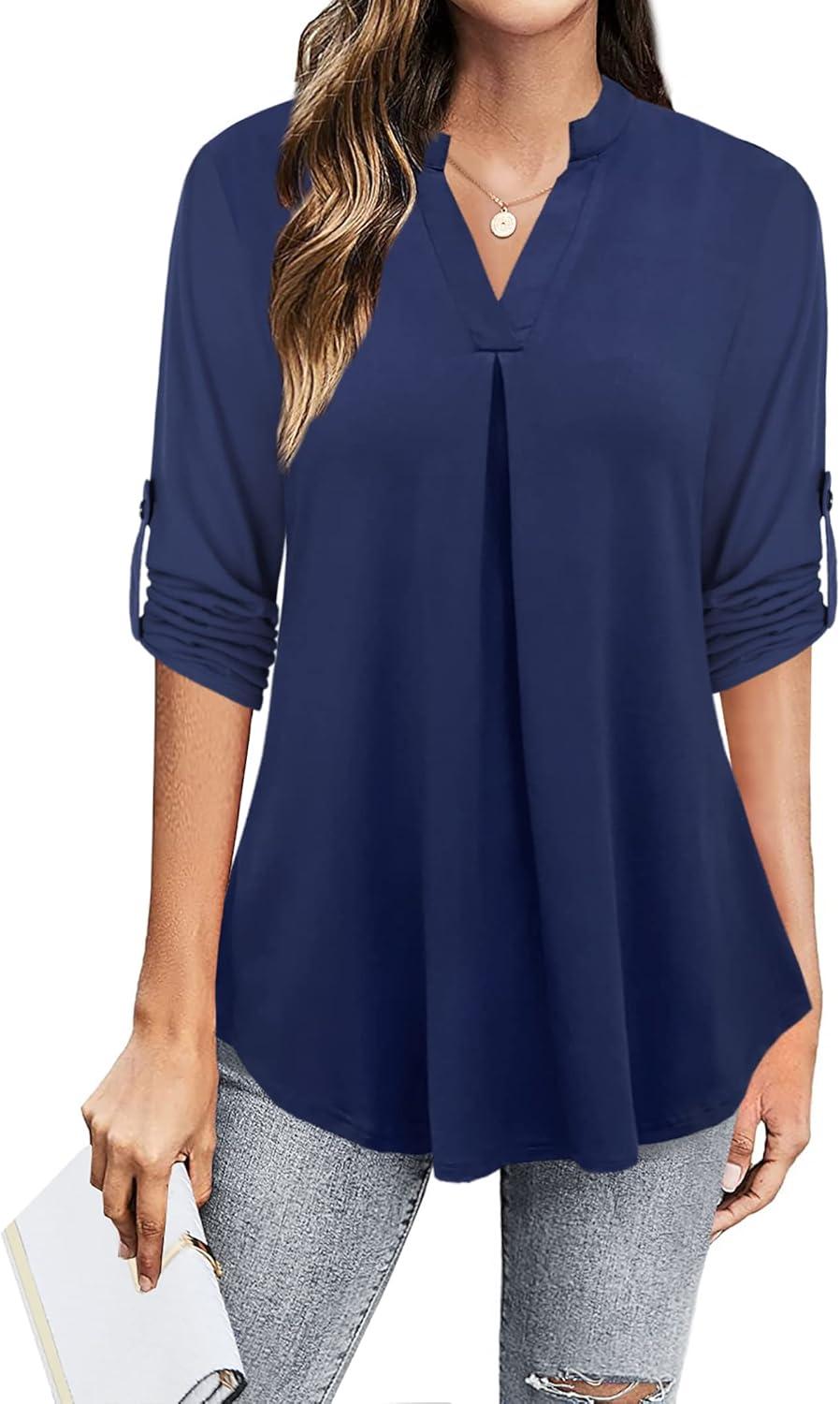 Get your hands on our exclusive Ninedaily Womens Tops Dressy Casual 3/4 Sleeve V Neck Chiffon Shirt Work Blouses(Blue) collection, now at a discounted price.
