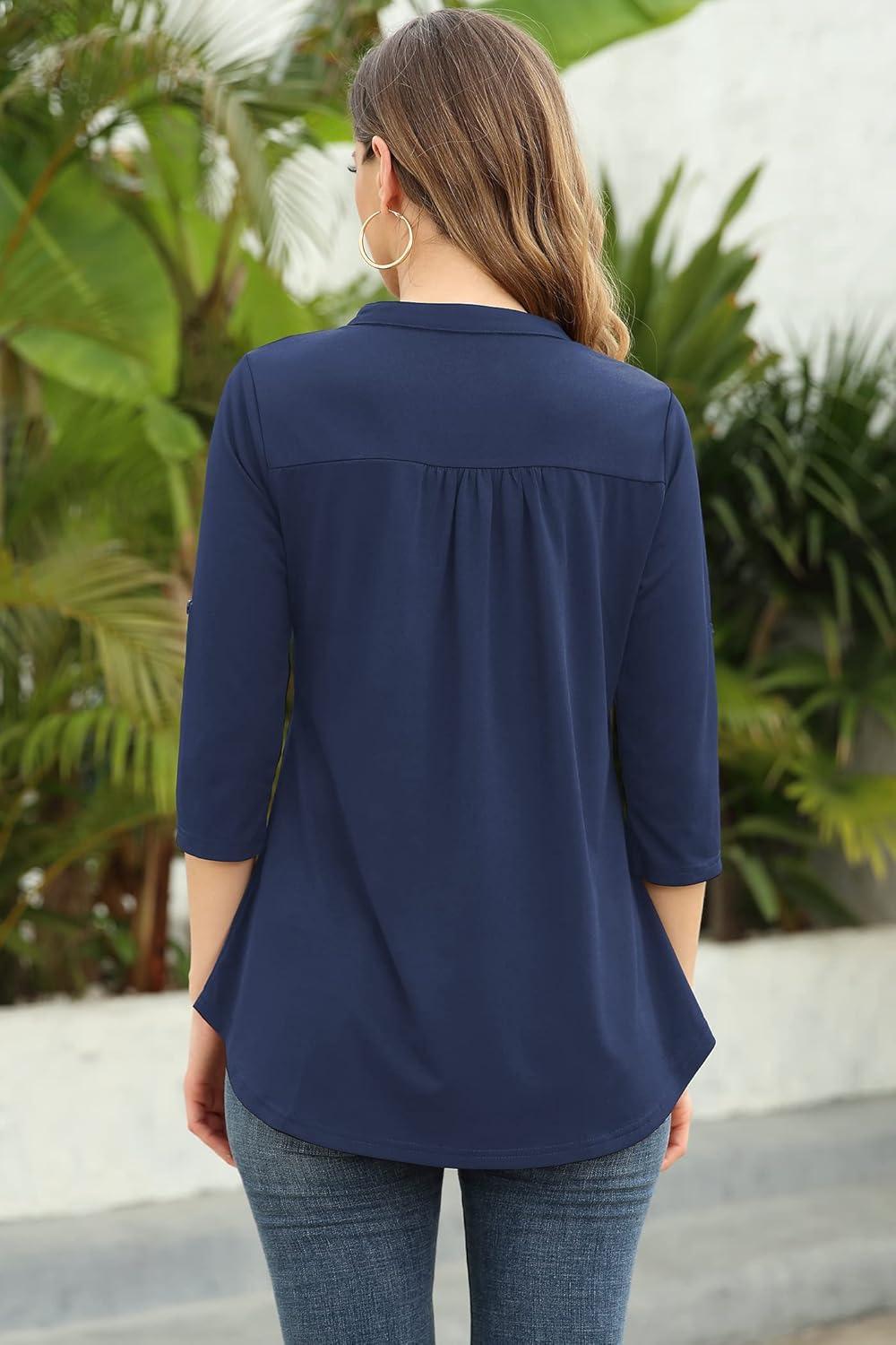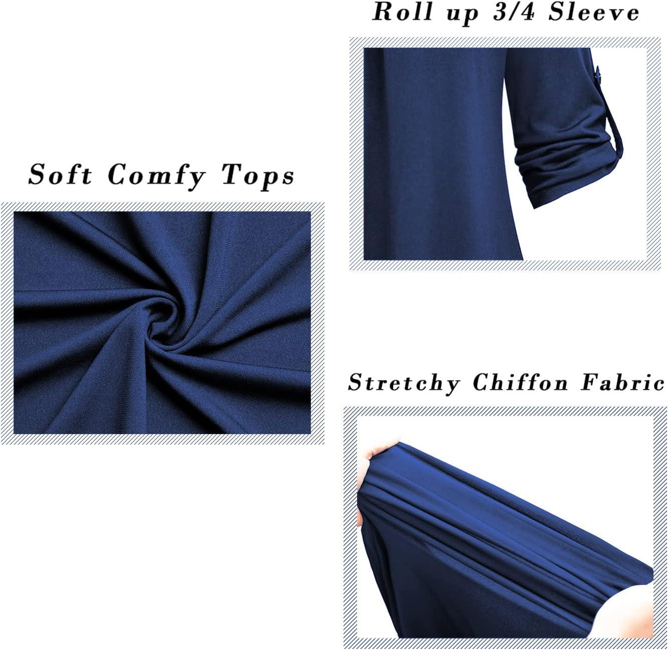 imageNinedaily Womens Tops Dressy Casual 34 Sleeve V Neck Chiffon Shirt Work BlousesBlue