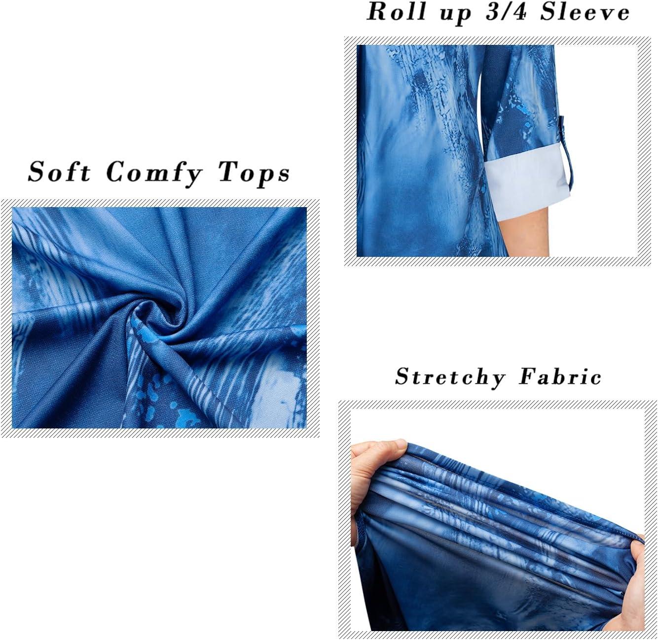 Ninedaily Womens Tops Dressy Casual 3/4 Sleeve V Neck Chiffon Shirt Work Blouses(Navy Floral)