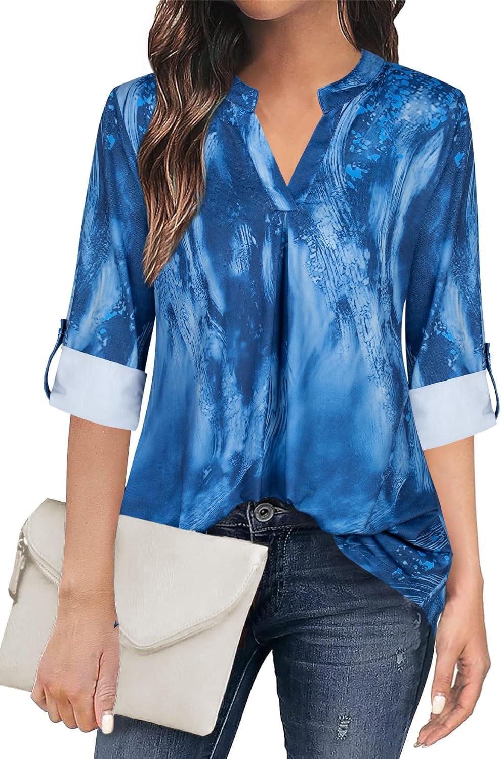 Ninedaily Womens Tops Dressy Casual 3/4 Sleeve V Neck Chiffon Shirt Work Blouses(Light Blue)