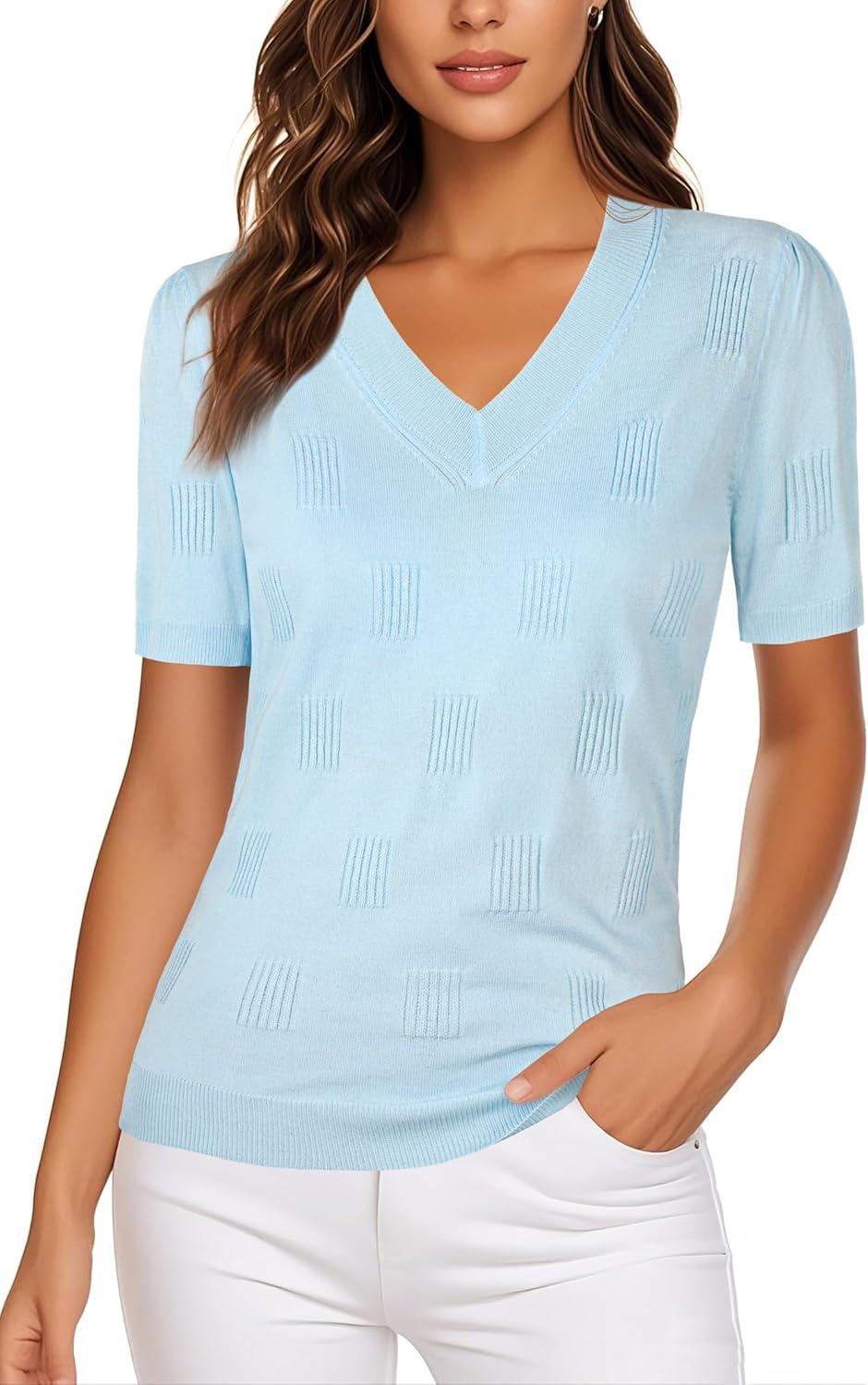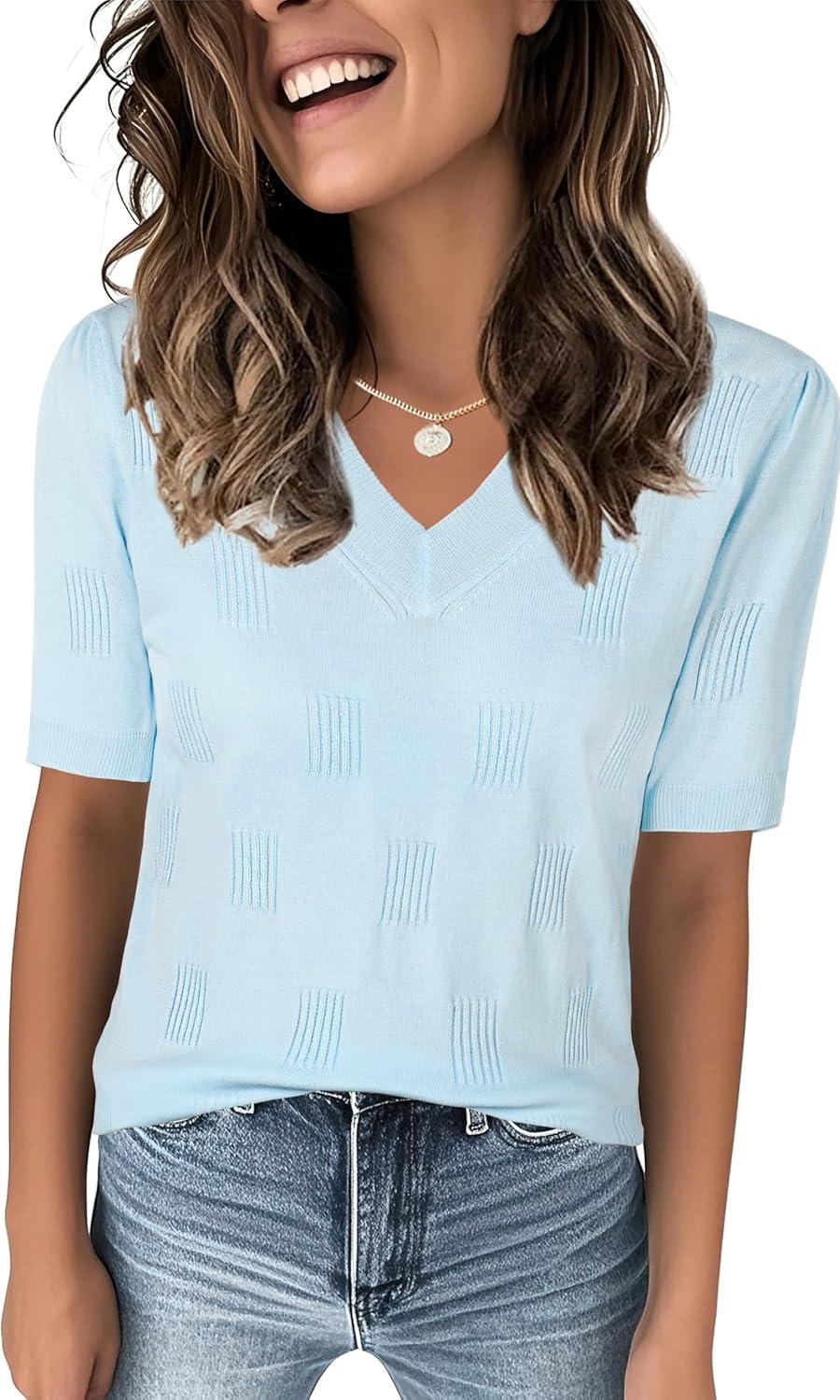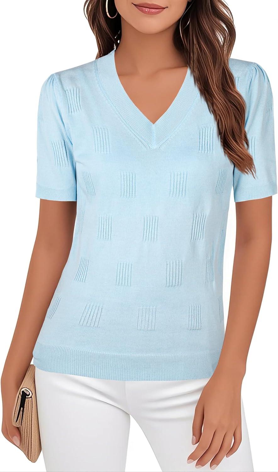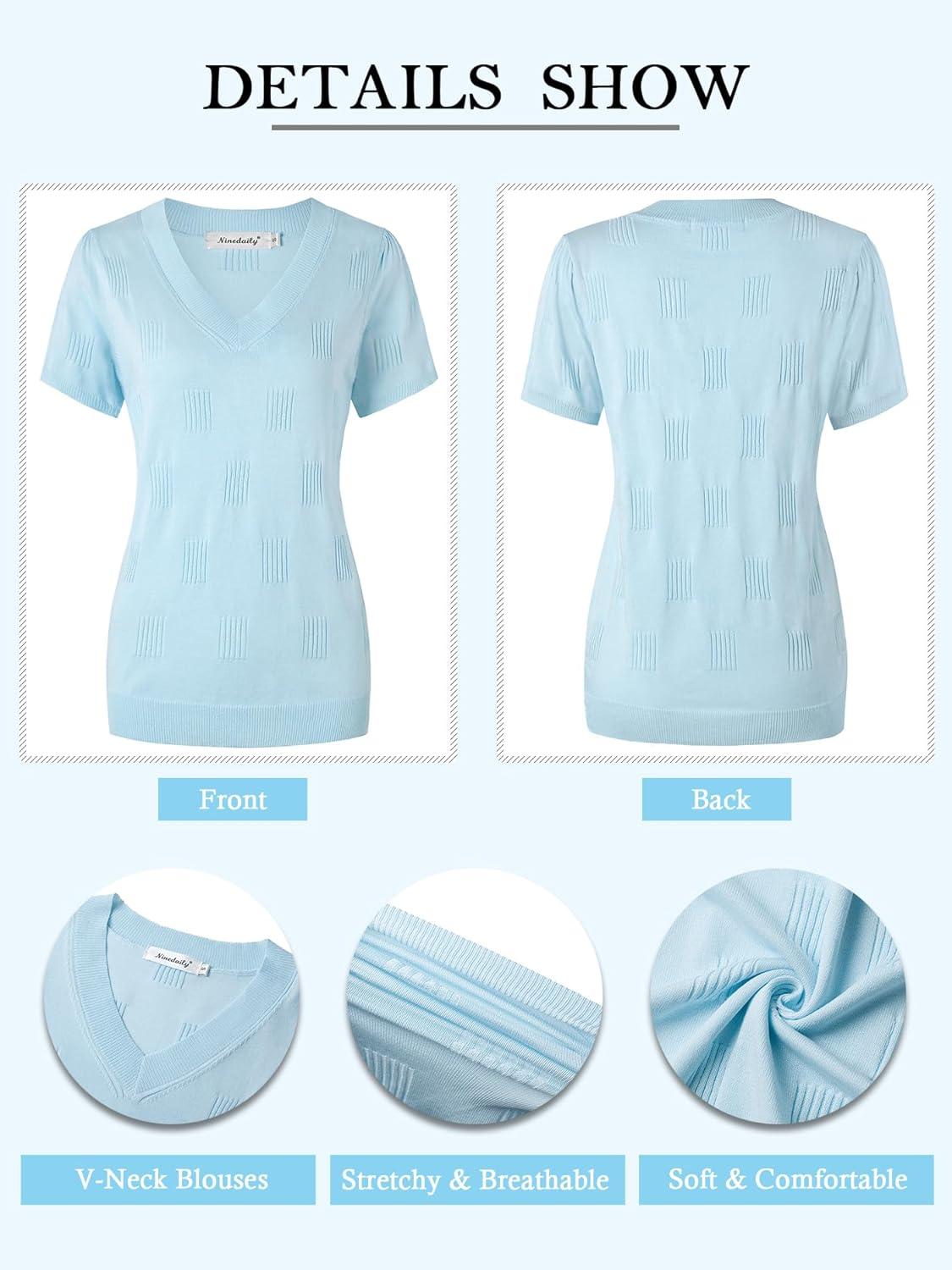 Ninedaily Women’s Tops Short Sleeve Sweater Knit T-Shirts Dressy Casual Blouses(Light Blue)