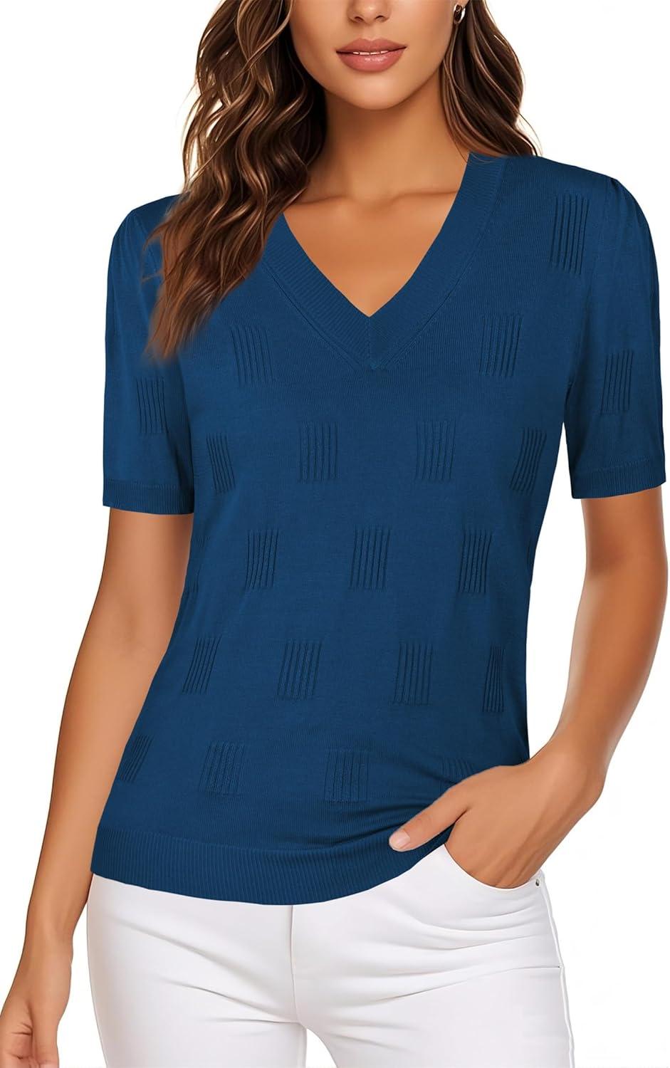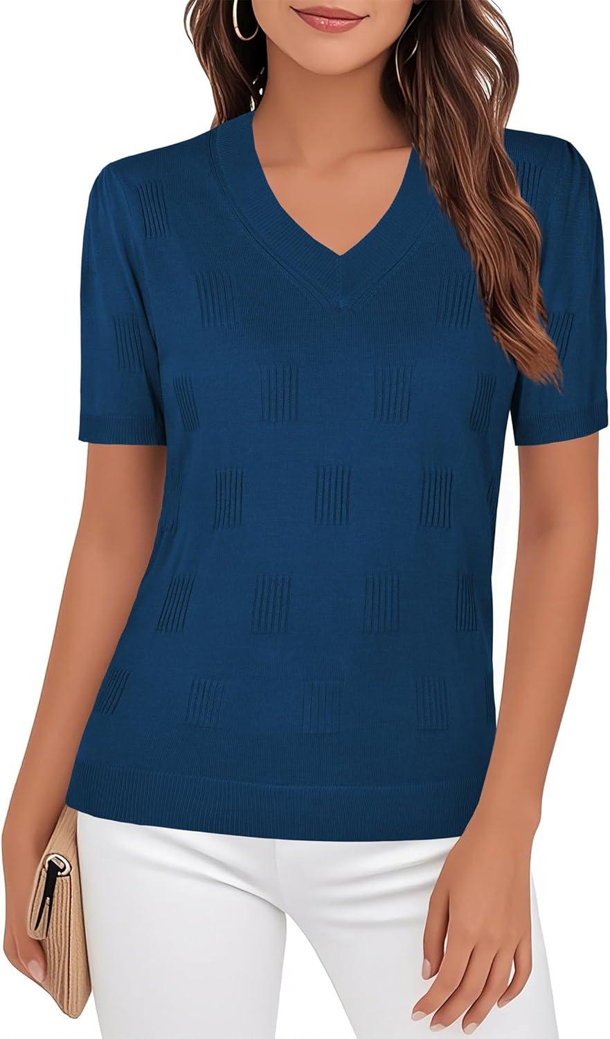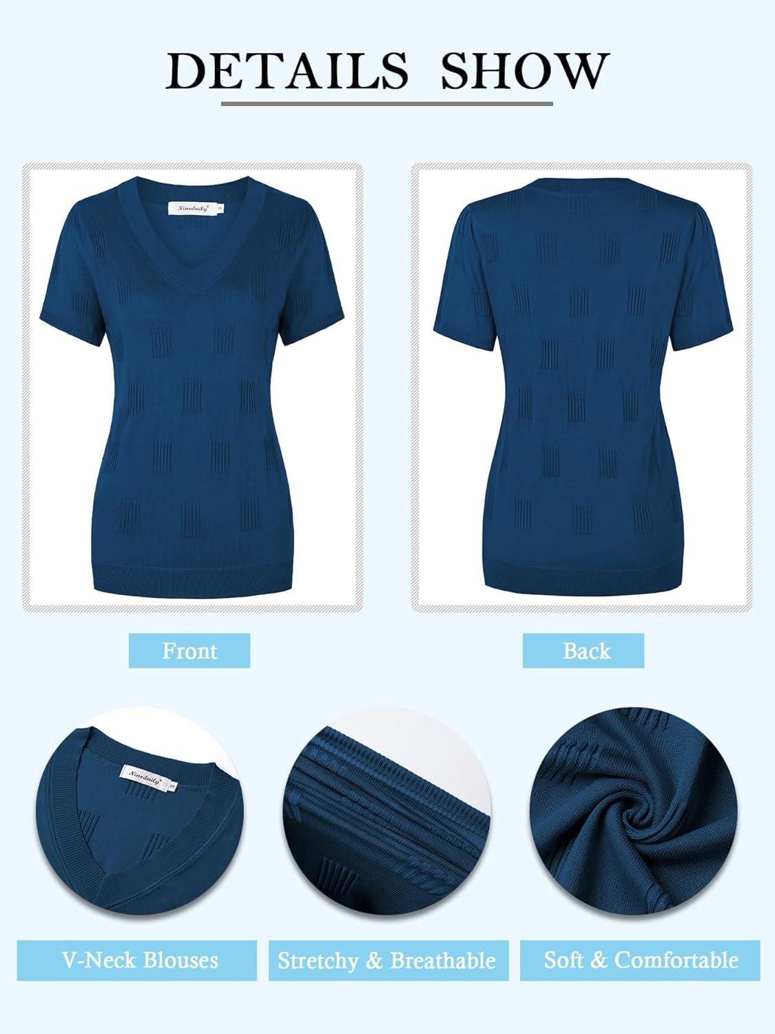 Ninedaily Women’s Tops Short Sleeve Sweater Knit T-Shirts Dressy Casual Blouses(Navy Blue)