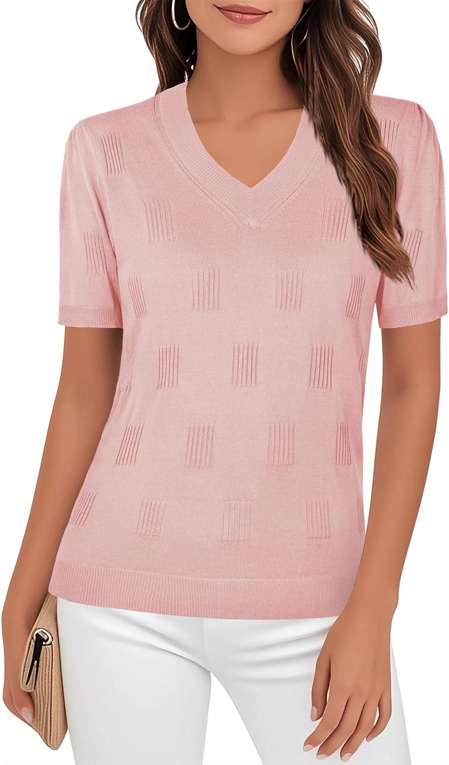 Ninedaily Women’s Tops Short Sleeve Sweater Knit T-Shirts Dressy Casual Blouses(Pink)