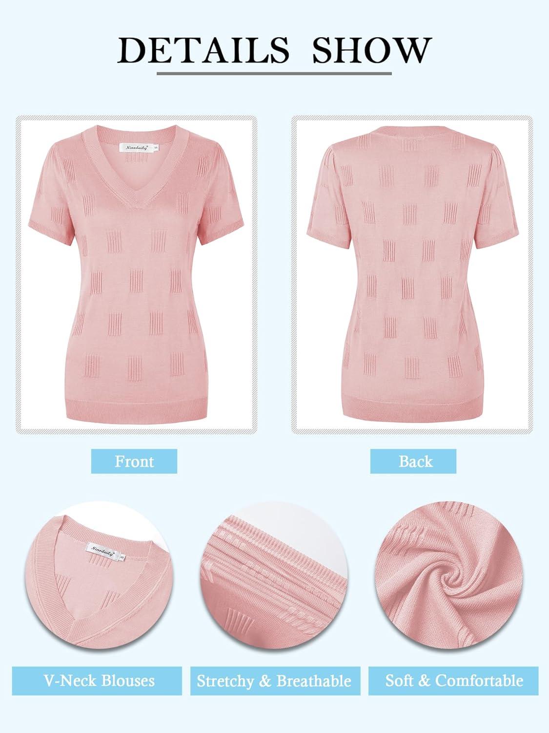 Ninedaily Women's Tops Short Sleeve Sweater Knit T-Shirts Dressy Casual Blouses(Pink)