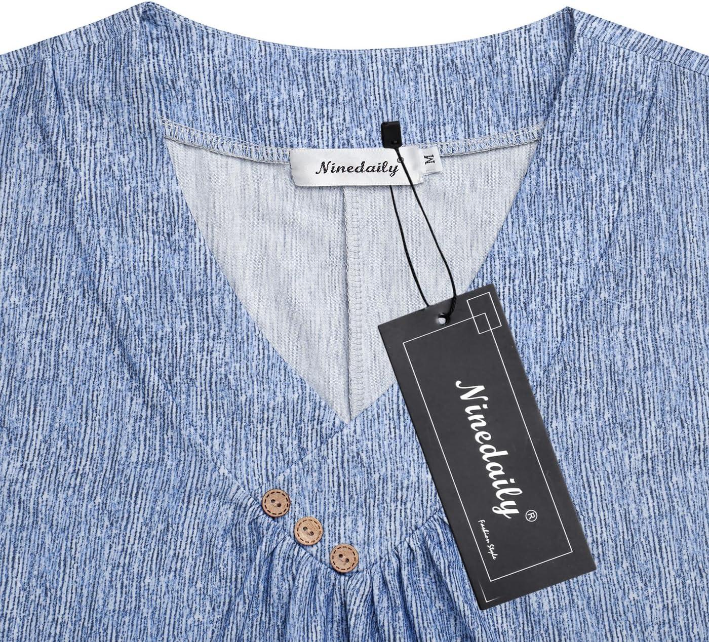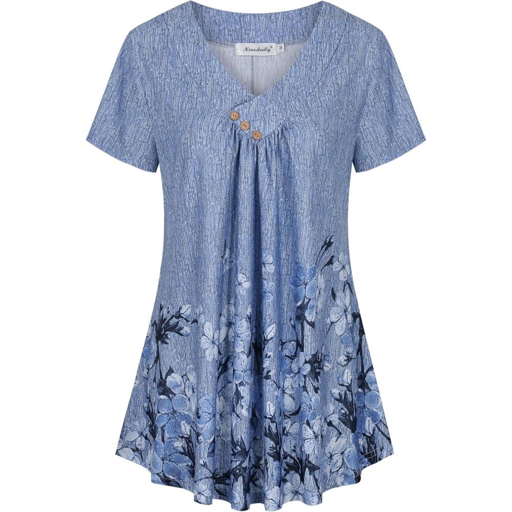 Ninedaily Women’s Tunic Summer Short Sleeve Top Loose V Neck Dressy Shirt Blouse(D-light Blue)