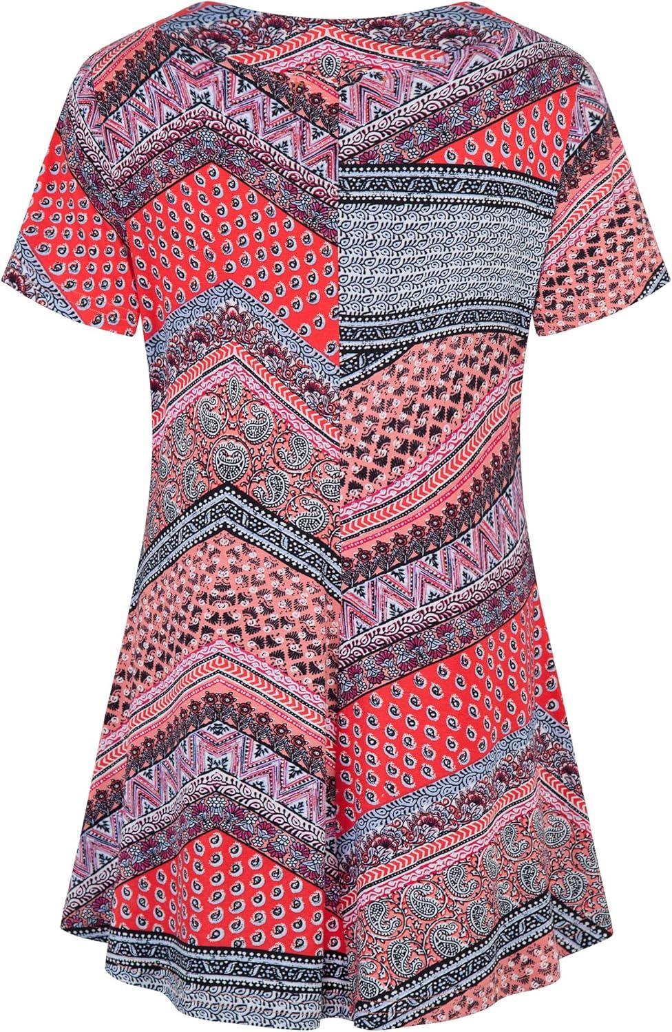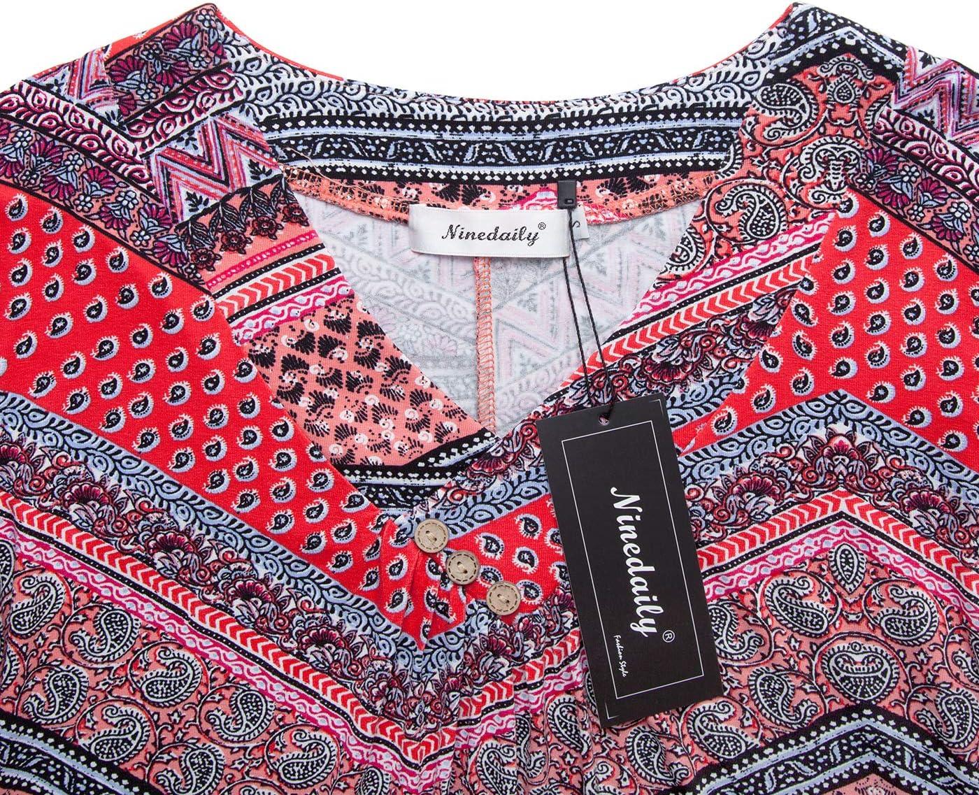 imageNinedaily Womens Tunic Summer Short Sleeve Top Loose V Neck Dressy Shirt BlouseOrange