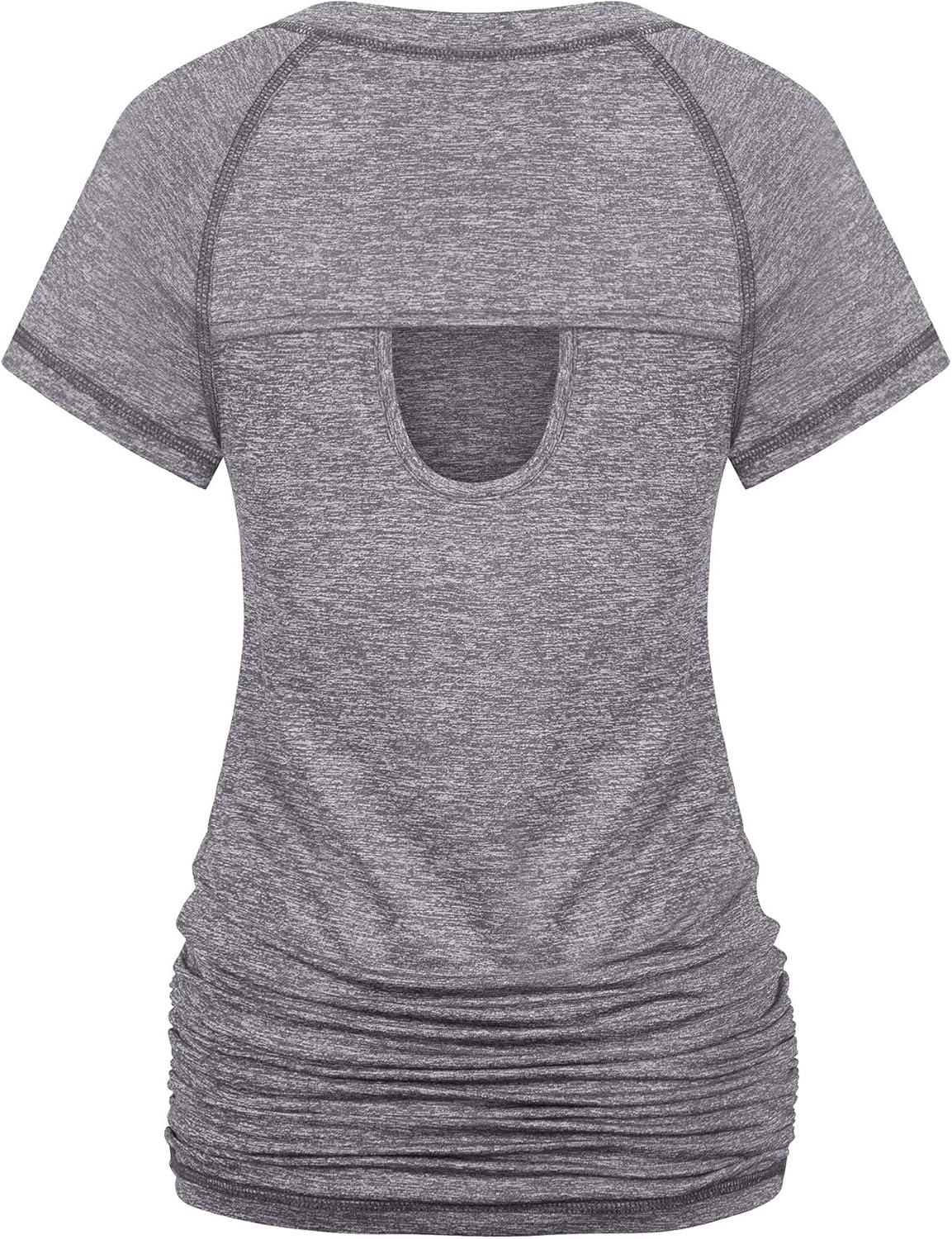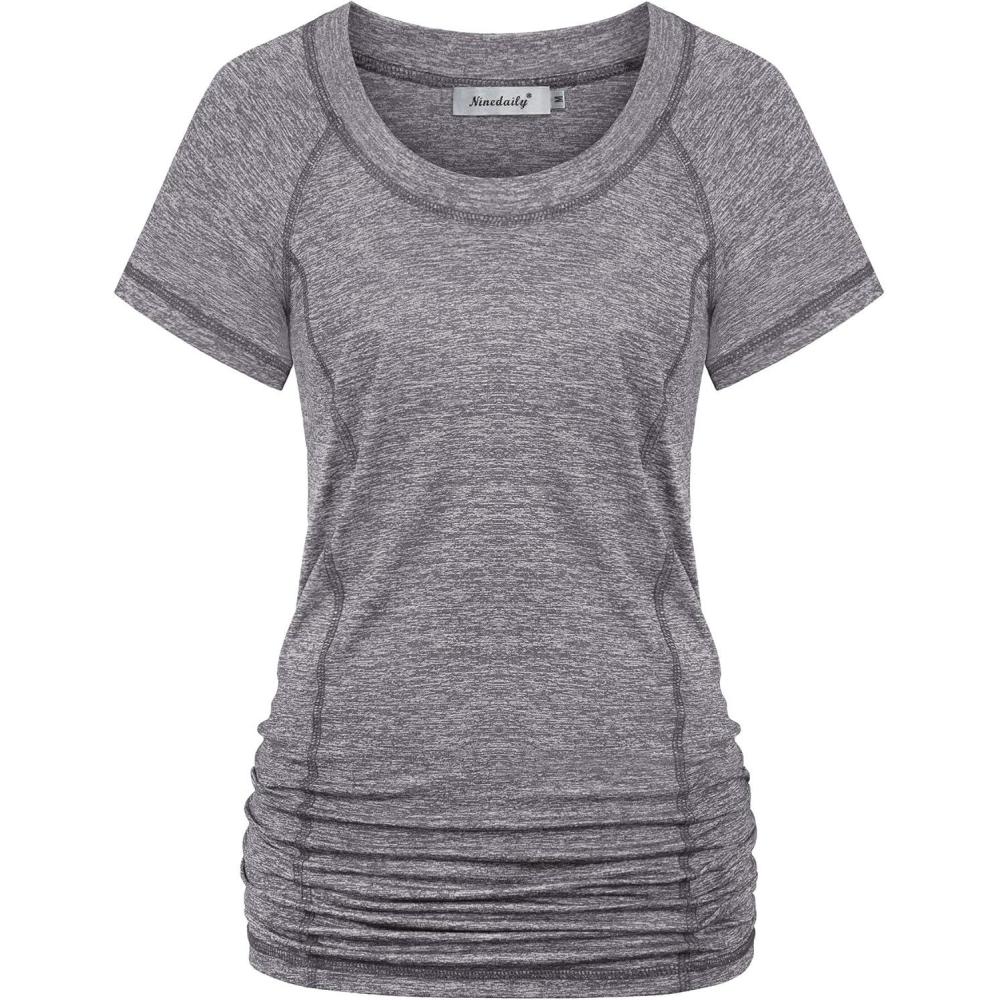 Ninedaily Womens Workout Top Running Yoga Shirt Summer Short Sleeve Casual Tunic(Gray)